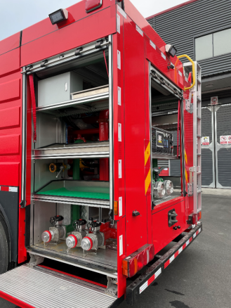 1.3 | 消防系統(tǒng)主參數(shù):水罐容積4000kg、A類泡沫500kg、B類泡500kg(或其他規(guī)格),消防泵在10bar壓力額定流量為3600L/min,消防炮流量2880L/min。 |